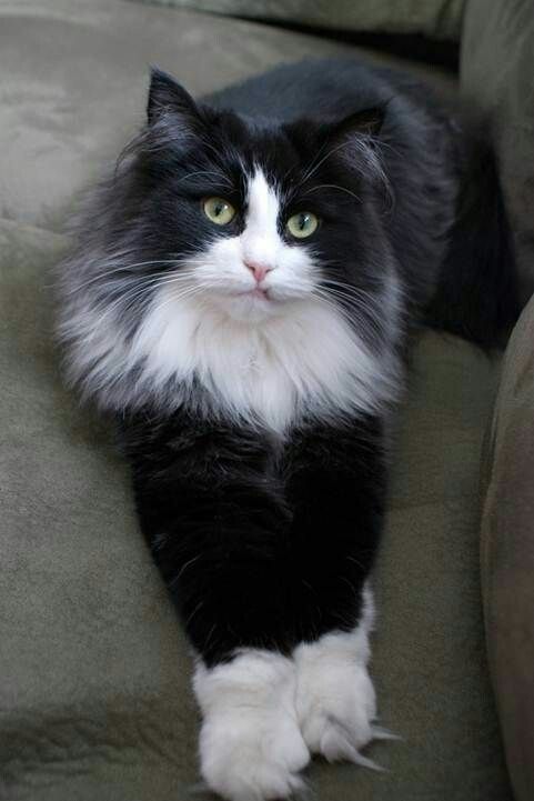 Черно белый пушистый кот