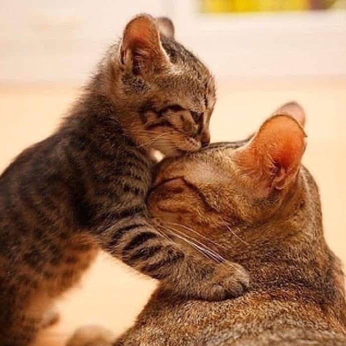 Когда ваша кошка нежно трется о вас своим лбом (или даже боковыми сторонами лица), это не только «объявляет» вас своим, оставляя их запах, но и способствует высвобождению счастливых эндорфинов — для вас обоих! Хотите показать им свою заботу на кошачьем языке? Соедините лбы или щеки!