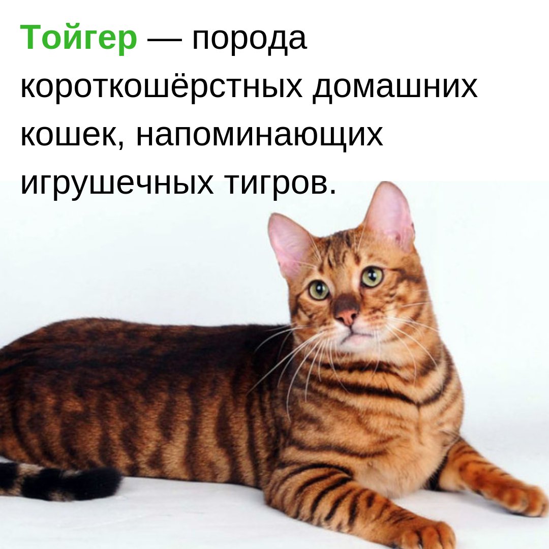 15 мая 2019 г. · Тойгер — это относительно новая порода кошек, выведенная Джуди Судген, которая была официально признана Международной ассоциацией кошек в 1993 году. Тойгер — маленькая кошка, выведенная так, чтобы выглядеть как тигр. История. Он очень заботится о своих кошках и пометах. Замечательный любвеобильный кот. 14 сентября 2010 г. · Тойгер — очень новая порода, у которой очень мало заводчиков. Узнайте больше об этой породе Манчкинские кошки — обычные домашние кошки с короткими ногами из-за естественной генетической мутации.Будучи такими умными и довольно энергичными, им также нравится находиться рядом с другими кошками, потому что они по своей природе довольно общительны. Тойгеры также очень умны и легко поддаются дрессировке. Поделитесь в WhatsApp. Питомник Bosky 935 просмотров Мое обещание вам. КОРОЛЕВЫ. · Тойгер — активные кошки, но Уилл Тойгер — дикая кошка с домашним характером. Если вы думаете, что эта порода для вас, было бы неплохо посмотреть профиль тойгерской кошки, чтобы убедиться, что эти красивые кошки будут для вас идеальным компаньоном.