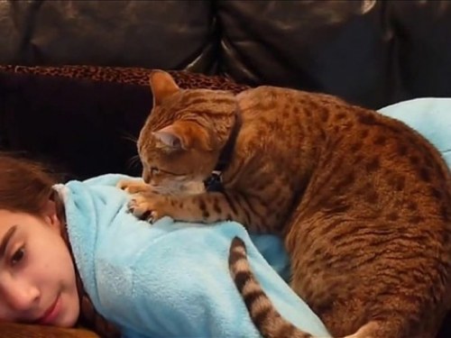 моя кошка мне так массаж на спине делаеткогда я в кровати лежу а ей места рядом со мной не хватает