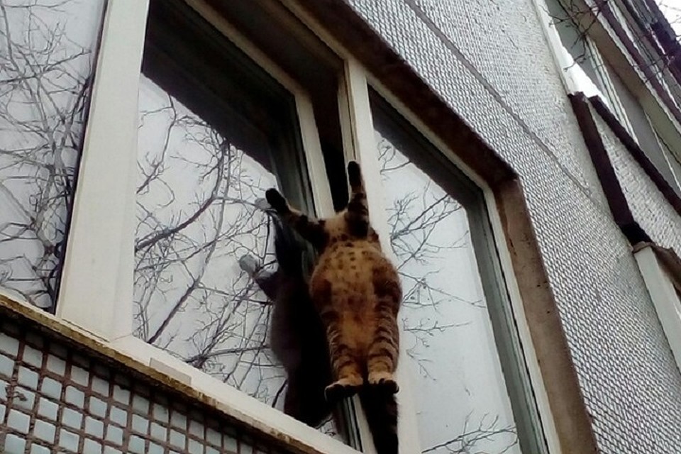 Что делать, если кошка застряла в пластиковом окне | e1.