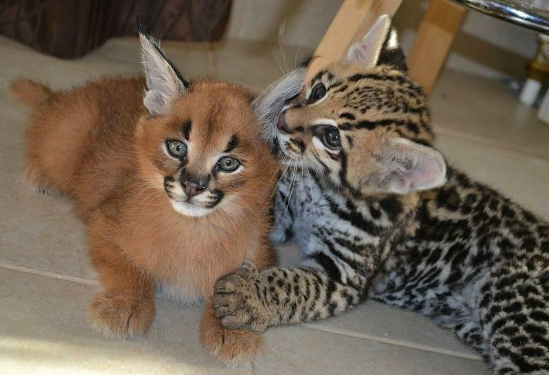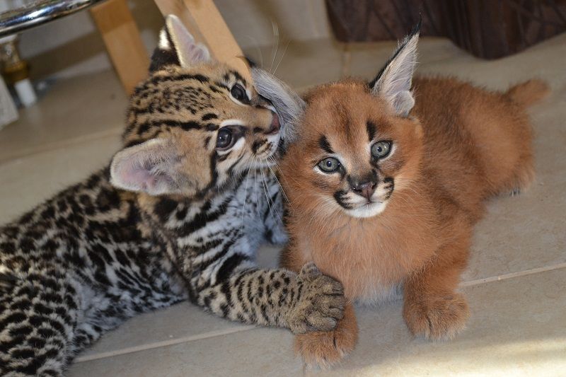 Каракалы хорошо уживаются с другими животными, особенно если они выращены вместе.