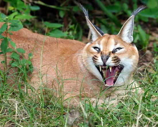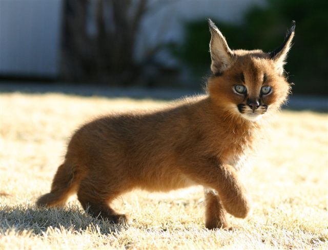 Черный пучок волос на его ушах на самом деле является одной из немногих общих черт с семейством рысей. Каракалы — самые крупные маленькие кошки Африки, самцы весят до 40 фунтов, а самки — до 35. Их рост достигает 20 дюймов и 39дюймов в длину. Они известны как «пустынные рыси» и встречаются в некоторых частях Африки и Азии.