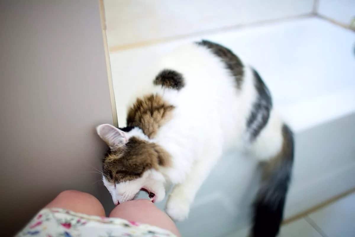 Что же делать, если кошка уже кусается за ноги и руки, а воспитание и игнорирование не помогает. Подобное действительно случается, чаще с темпераментными животными или с тихонями, которые чувствуют себя очень уязвимыми.