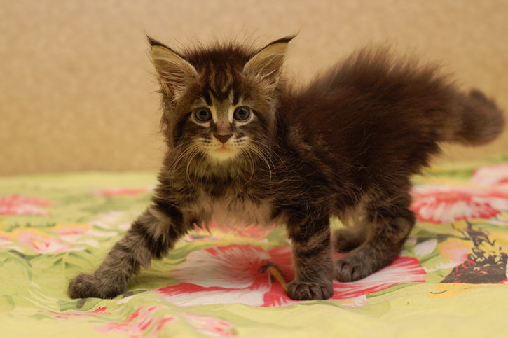 Кошачья беременность длится 60-65 дней. Любопытный факт: если в помете больше девочек, время вынашивания потомства увеличивается, если больше мальчиков – уменьшается. При рождении вес мейн-кунов не одинаков в зависимости от генетики, пола, числа братьев и сестренок.