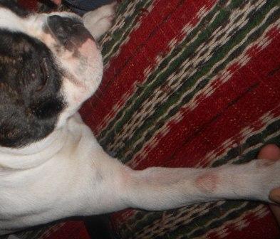 - Раздражение у собаки на животе или в паху
