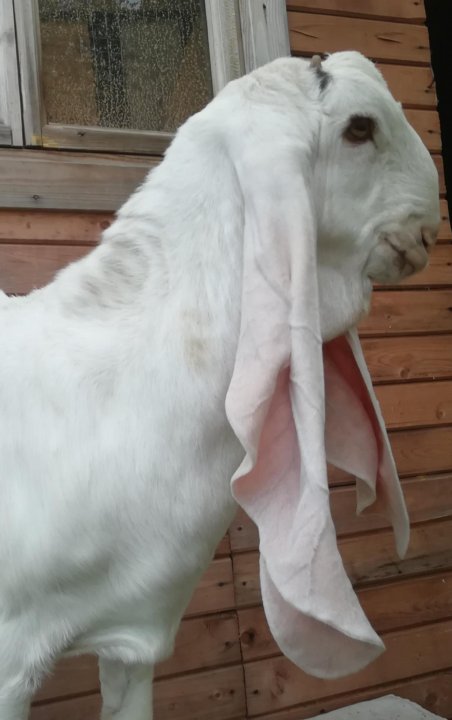 Уши значительно длиннее, чем у нубийских коз, мягкие, широкие и тонкие. От нижней челюсти к шее тянется характерный для породы кожный подвес. Шея длинная, хорошо обмускуленная. Корпус с хорошо развитой мускулатурой, удлиненный.