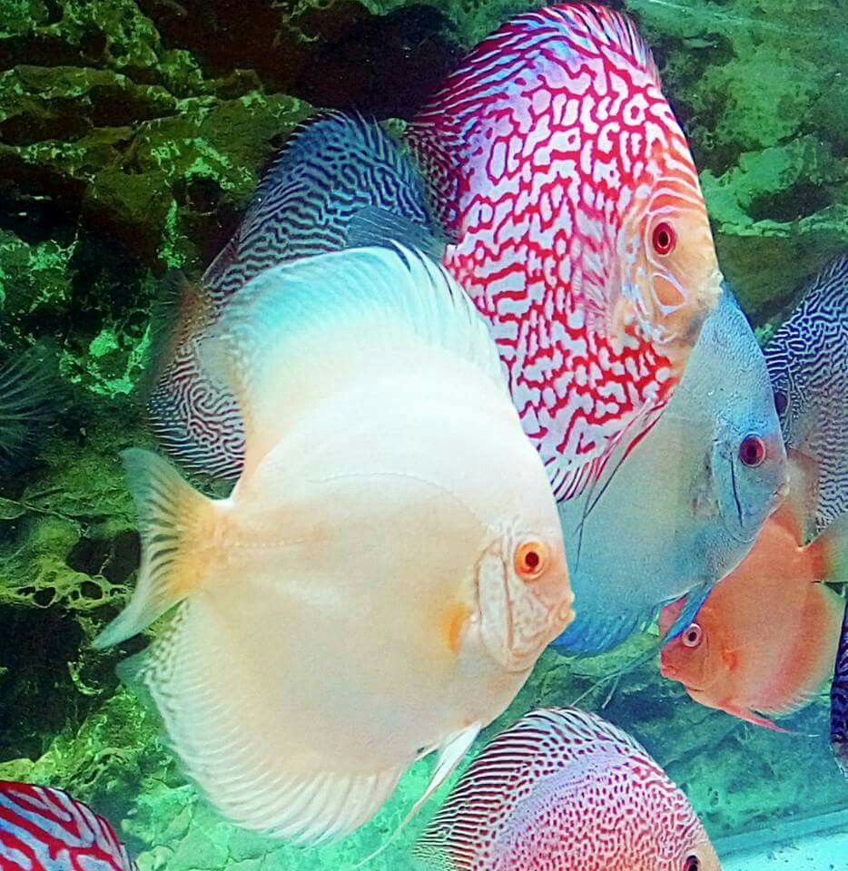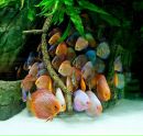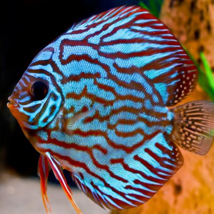 Этих красавцев часто называют – королями пресноводных аквариумов. Природная расцветка дискуса состоит из коричневатых оттенков, но селекционеры вывели вариативы всевозможных цветовых сочетаний. Это очень сообразительные рыбки, быстро привыкающие к хозяину и берущие корм прямо из рук. Дискусы любят жить в чистой теплой воде в просторных аквариумах, с жестколистными растениями.