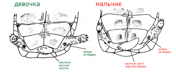 Может быть, опытный любитель-разводчик черепах и знает как определить пол раньше этого срока, то юный натуралист наверняка будет испытывать трудности в этом вопросе.- длины и формы хвоста черепашки