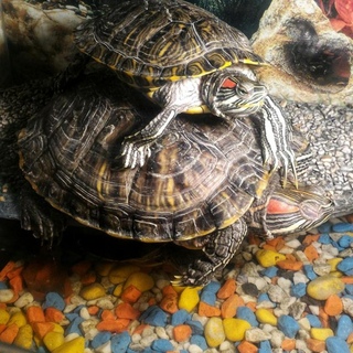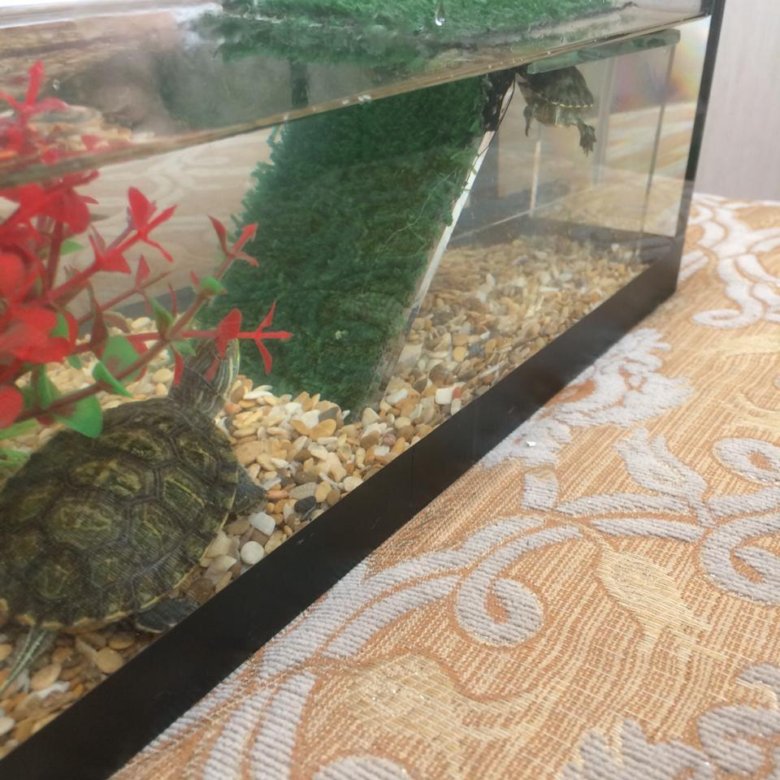 Как и в случае с рыбками, перенаселение аквариума с черепашками негативно повлияет на качество воды. Если у вас две взрослые черепашки средних размеров, им нужно больше пространства. Подойдет емкость объемом от 120 до 200 литров.