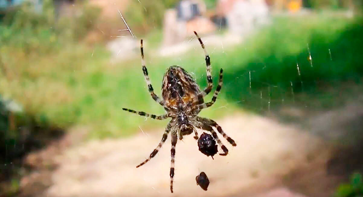 Как же происходит охота? При попадании какого-либо насекомого в паутину пауку передается вибрация сети, и, подбираясь к жертве, он убивает ее при помощи яда. Затем опутывает жертву тонкими нитями, которые вытягивает из брюшка с помощью пары ног.