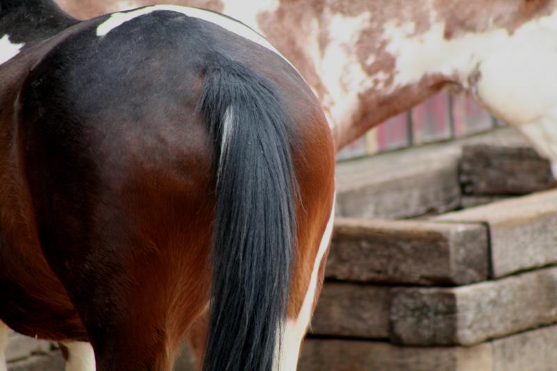 Вид сзади на лошадиный круп с подхвостником. Стоковое фото № 27466641, фотограф Абрамова Ксения / Фотобанк Лори