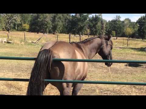 Back view of dapple-gray horse. Close up croup whis black crupper.