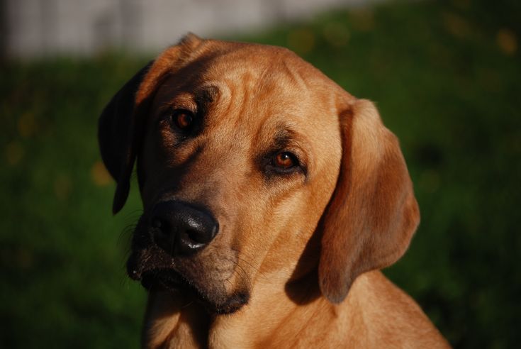 Родезийский риджбек стоит на траве.Эта порода собак идеально подходит для семей с маленькими детьми и известна своей любовью к детям, которых они любят.