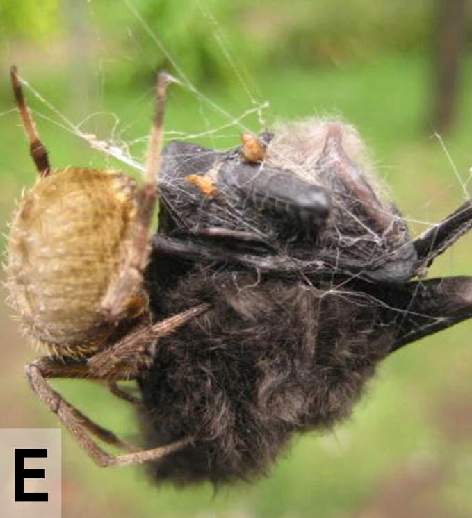 Съедобная добыча завернута в шелк. Останки часто можно увидеть прикрепленными к паутине тех видов пауков, которые их строят.