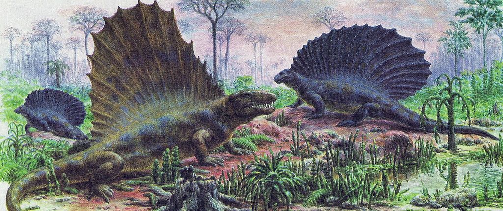 Одним из таких существ был Диметродон, хищник-мясоед с огромным парусом на спине. Ученые считают, что огромный парус, возможно, использовался для того, чтобы диметродон быстрее согревался по утрам. Это позволило ему питаться другими животными тропических лесов, прежде чем они вставали и начинали движение.