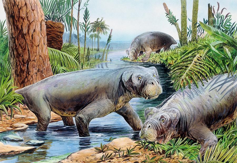 Это удивительное животное не было ни динозавром, ни млекопитающим. Учёные отнесли его к синапсидам (зверообразное или же тероморф). Внешне эстемменозух напоминал с точки зрения человека какого-то мутанта — он был похож на гибрид носорога, трицератопса и бегемота. Кошмарное сочетание! Последние научные исследования показали, что это существо всё же предок современных млекопитающих, хотя и весьма отдалённый. Обитал наш «мутант» на территории современной Российской Федерации примерно 267 миллионов лет назад.