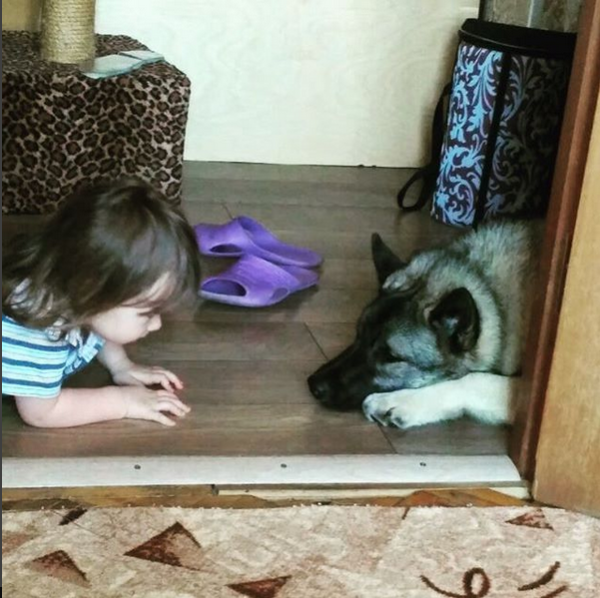 Норвежская лосиная лайка хорошо относится к детям, прощает им многие шалости и излишнюю навязчивость. Она понимает, что малыши слабы и уязвимы, поэтому старается всячески их защищать. Для подростков элкхунд станет отличным товарищем по играм – веселым и неутомимым.