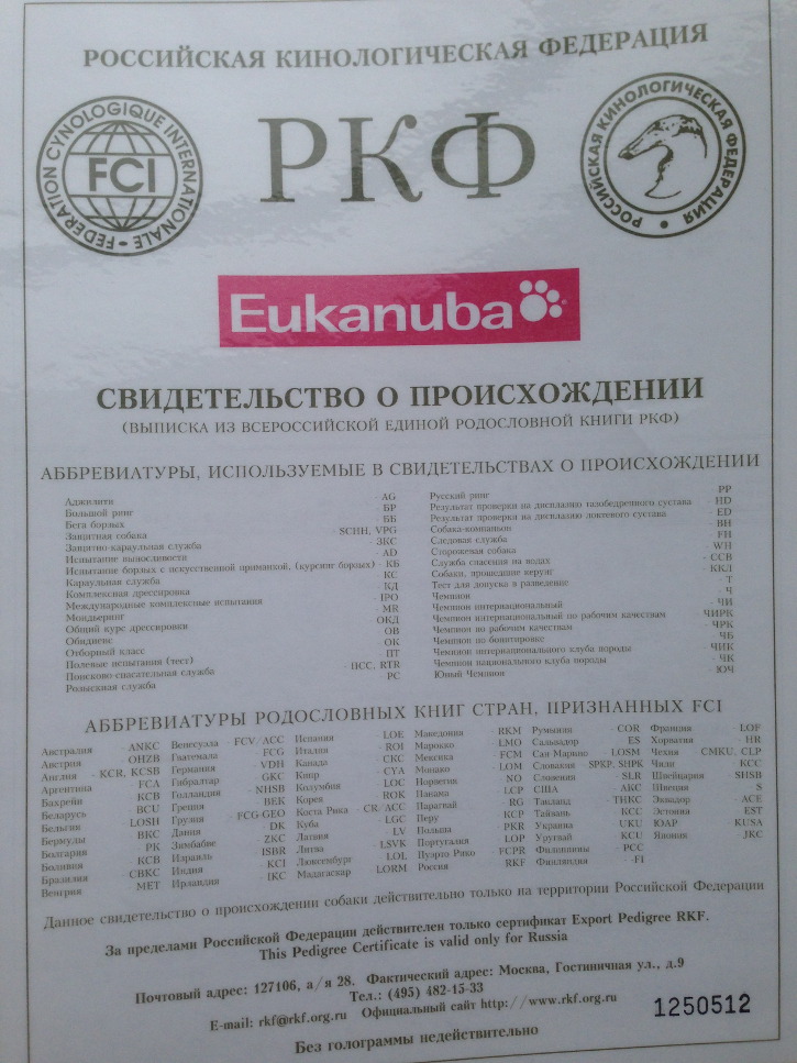 | Конкурсная регистрация Квалификация / Информация | FCI, AKC-FSS |
