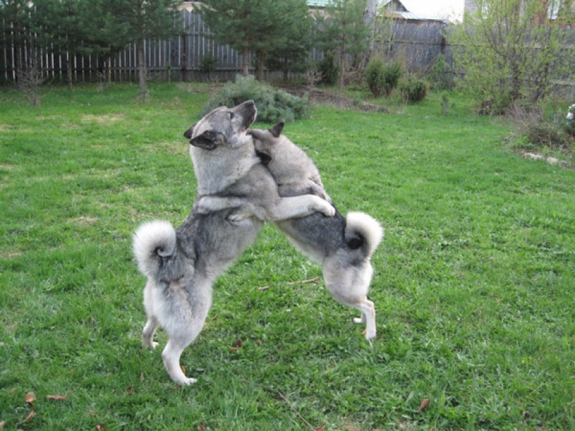 Маленькому элкхаунду нужна ранняя социализация. После необходимых прививок не откладывайте его знакомство с окружающим миром, остальными животными, возите его иногда в общественном транспорте, дайте малышу узнать новые запахи.