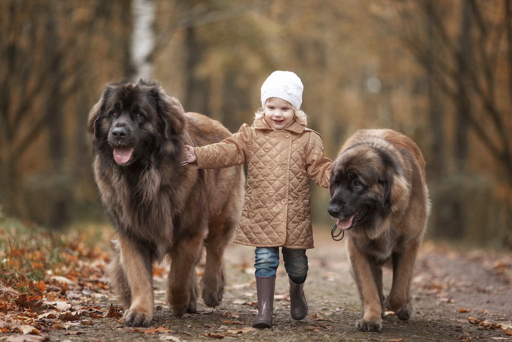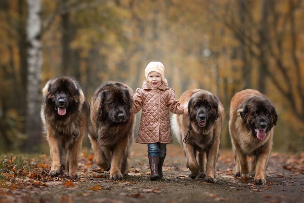 У леонбергеров, как и у босеронов, существует врожденная любовь к детям. Они ладят не только с детьми хозяина.