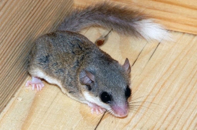 На фото лесная соня демонстрирует свой пушистый хвост.