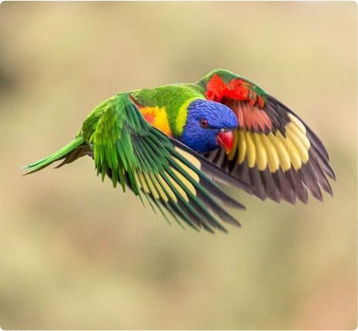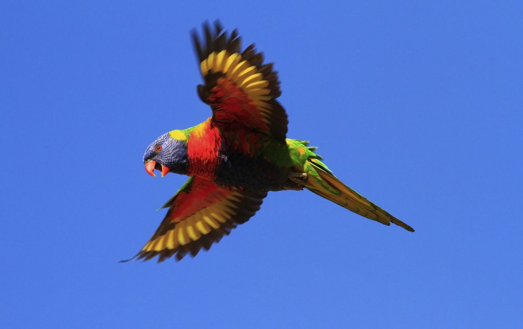 Радужный лори парит высоко в небе
