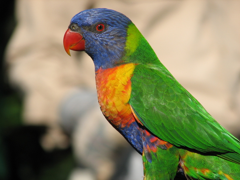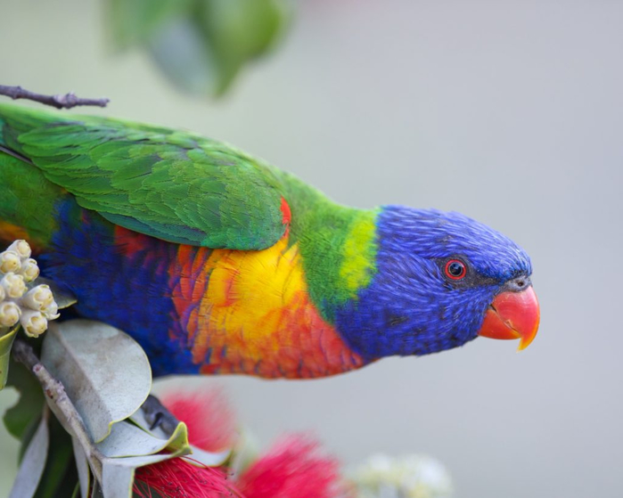 Радужный лорикет назван в честь его яркой окраски, покрывающей тело.