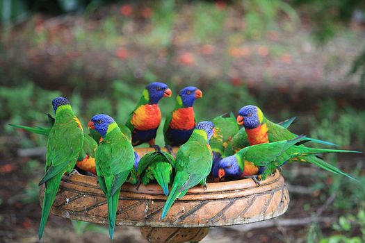 Наиболее распространенными собирательными существительными для описания группы радужных лорикетов являются болтающие или стая.