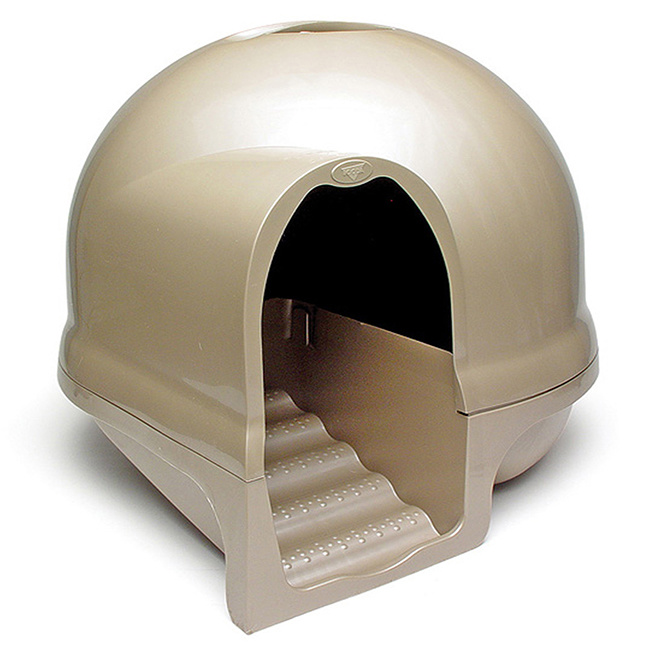 Главное достоинство такой модели в том, что закрытый лоток для кошек хорошо задерживает запах: обычно в нем установлен угольный фильтр.