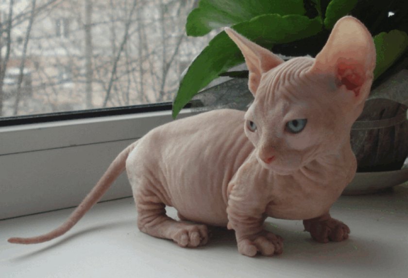 Появились они в результате скрещивания вислоухих кошек с донскими сфинксами. В итоге получились животные, у которых: