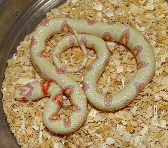 - морф «Lavender» — самая интереснейшая и необычная расцветка, отличающаяся тем, что меланин полностью отсутствует, благодаря чему полоз приобретает нежный лавандовый, розоватый или кофейный оттенки.