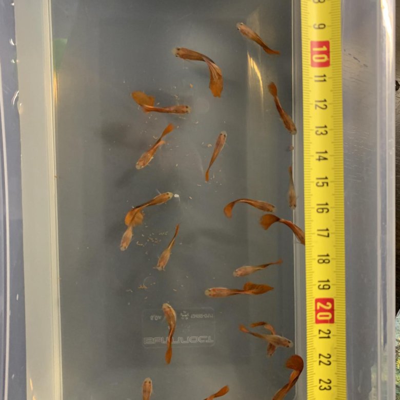 Мальки гуппи мелкие; они имеют длину около 1/4 дюйма (0,6 мм).