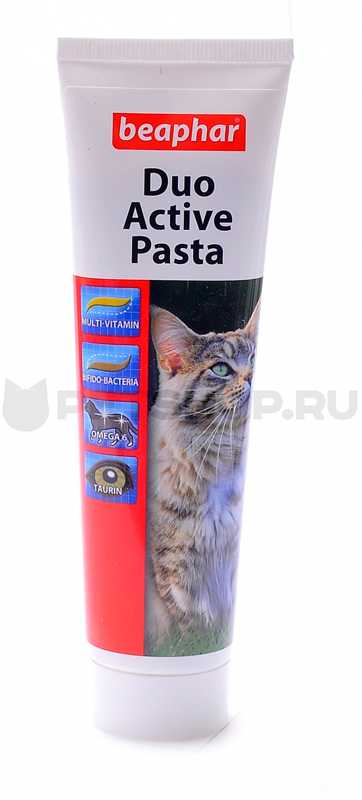 5 г) пасты ежедневно; рекомендуется давать пасту до еды в чистом виде непосредственно из тюбика или перемешать ее с кормом