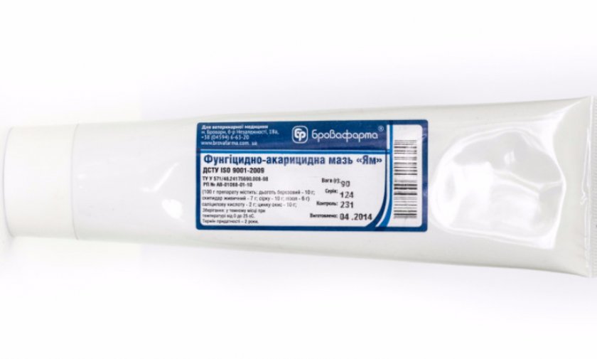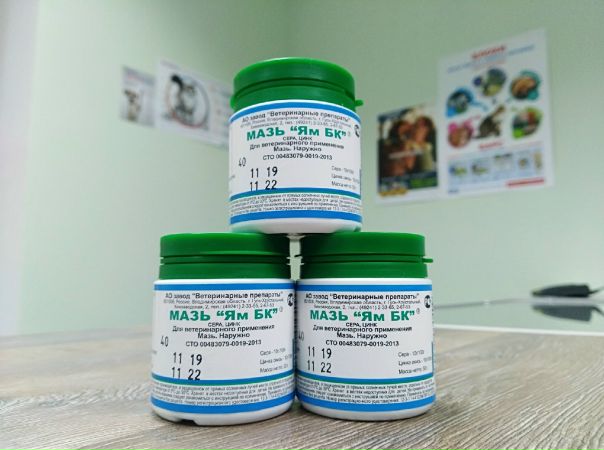 Лечение мазью ЯМ БК повторяют в случае обнаружения у животных возбудителей заболевания.