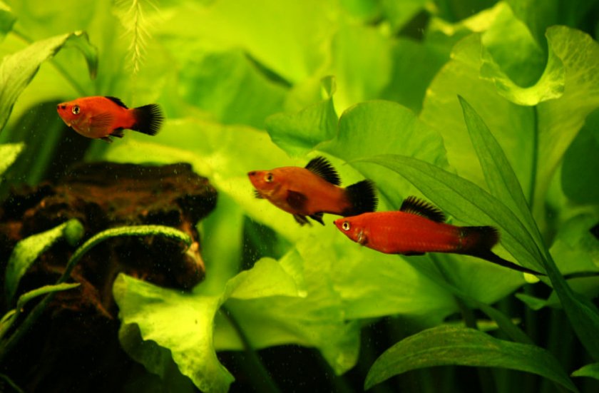 Содержать меченосцев лучше всего в аквариумах с большим количеством растений и свободным местом для плавания. Плавающие растения создадут рассеянный свет и послужат укрытием для мальков.