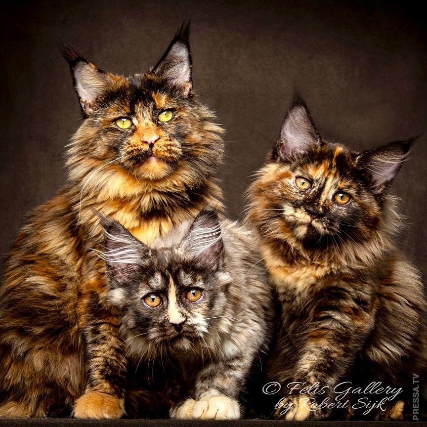 Однако мейн-куны с черепаховым окрасом от смокинга начинаются с черно-кремового тигрового или голубо-кремового тигрового окраса.