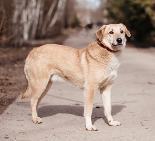 Метис сибирской хаски и золотистого ретривера