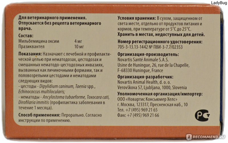 ПРОИЗВОДИТЕЛЬ Новартис Санте Анимал С.А.С. (Novartis Sante Animal S.A.S), Франция. Произведено по заказу Новартис Энимал Хелс (Novartis Animal Health d.o.o.), Словения.