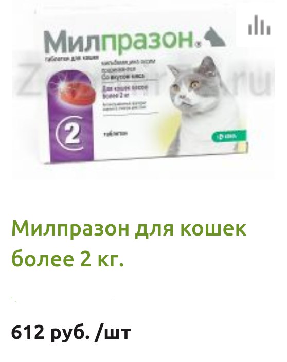 Милпразон для кошек более 2 кг 2 таблетки 16 мг —