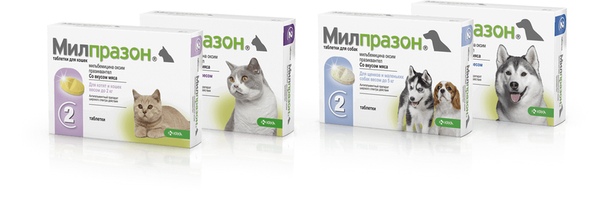 Милпразон таблетки для кошек в качестве действующих веществ содержит мильбемицина оксим и празиквантел. Выпускают препарат в двух модификациях: «Милпразон для котят и кошек весом до 2 кг», содержащий в одной таблетке в качестве действующих веществ мильбемицина оксим – 4 мг и празиквантел – 10 мг; и «Милпразон для кошек весом более 2 кг», содержащий в одной таблетке в качестве действующих веществ: мильбемицина оксим – 16 мг и празиквантел – 40 мг.