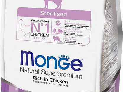 Monge (Монже) — Sterilised Chicken, корм для кастрированных и стерилизованных кошек с курицей, 10 кг