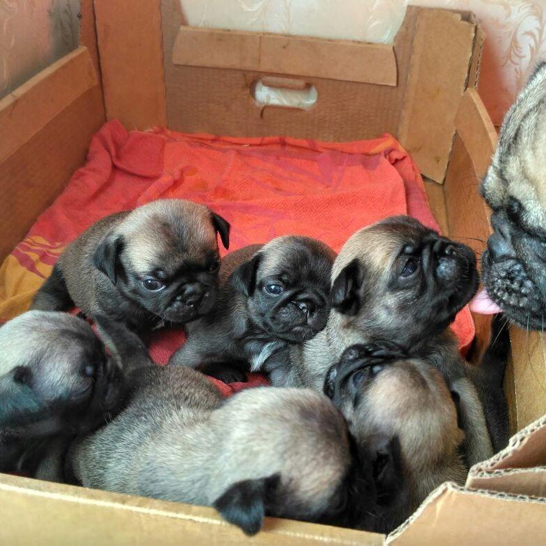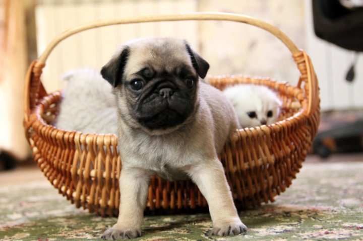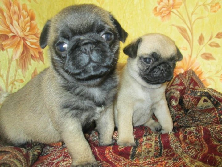 Щенки черного и бежевого мопсов очень доброжелательны. Они в состоянии даже успокоить плачущего младенца и поднять настроение тоскующего подростка.
