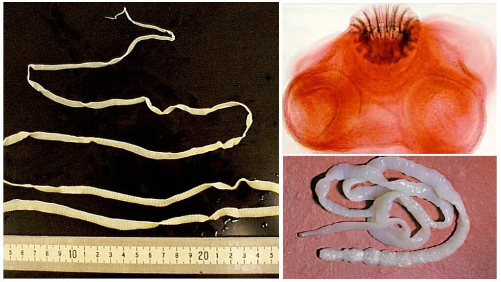 Ленточные глисты – крепящиеся к стенкам тонкого кишечника присосками плоские длинные черви 10-70 см.
