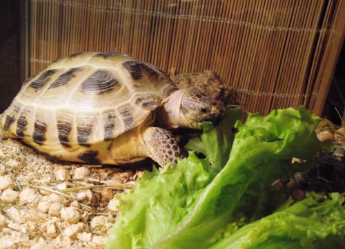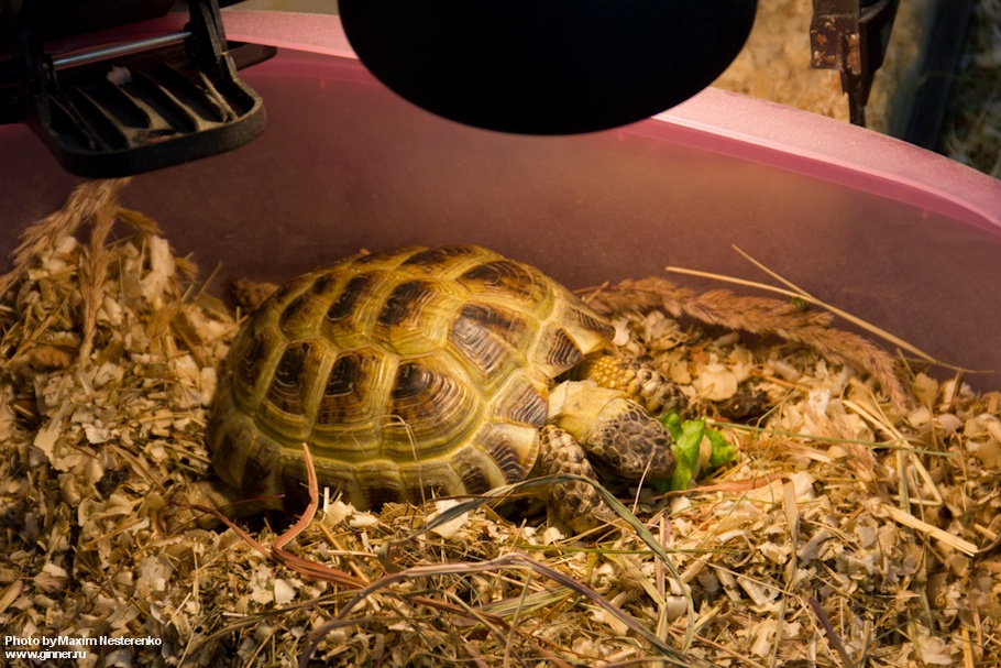 За час-полтора до кормления животное, содержащееся в квартире на «вольном выпасе», необходимо поместить под нагреватель, чтобы «разогреть» черепаху. Лучше, если тепловые ванны будут длиться весь световой день.