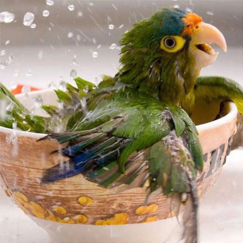 Купание попугая | Как, когда и в какой воде купаться попугайчику