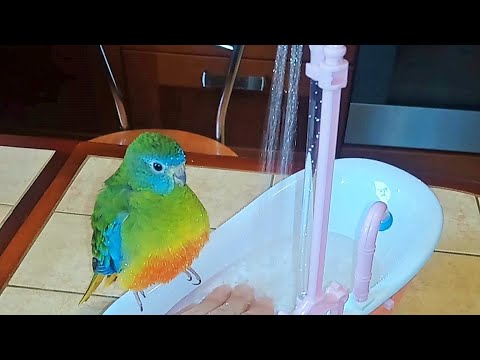 Некоторые попугаи от природы любят воду и сразу же прыгают в нее, когда предоставляется возможность. Если вы еще этого не сделали, посмотрите, будет ли ваш попугай купаться, наполнив раковину водой комнатной температуры и посадив попугая рядом с ней.