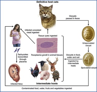 Только кошки или кошачьи являются окончательными хозяевами T. gondii, поэтому они служат резервуаром для инфекции и могут передавать ооциты через свои фекалии.