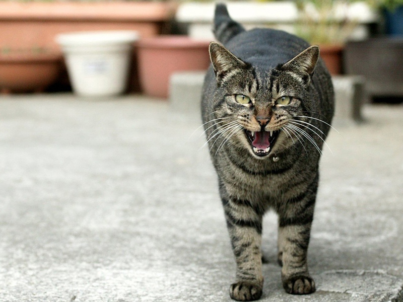 Шипение. Это предупреждение о том, что кот собирается напасть или он раздражен. Также так коты реагируют на все неизвестное, что кажется им опасным.