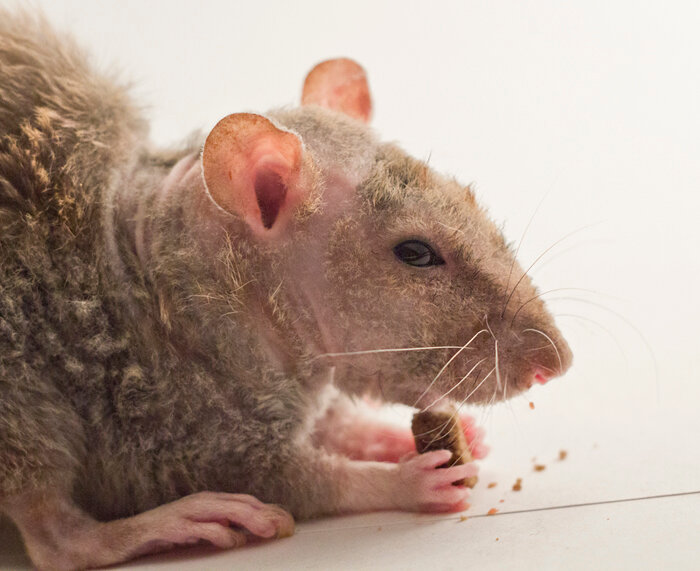 Здоровая крыса имеет чистые уши и глаза, полностью покрыта мехом (если, конечно, нет двойного рекса или безволосого животного) и не имеет струпьев, порезов и бугорков. кожа чистая.. Все крысы рождаются с определенным уровнем микоплазмы и очень предрасположены к респираторным заболеваниям. Это означает, что следует ожидать случайного чихания, но если вы замечаете его часто, вам может потребоваться консультация ветеринара по поводу антибиотиков. Другие признаки болезни включают выпадение волос (особенно на лице), отсутствие активности, потерю аппетита, любые выделения из глаз или ушей и любые признаки необычной агрессии.